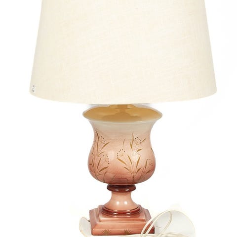 Pöytävalaisin, jossa on laskostettu kermanvärinen varjostin ja koristeellinen kultainen reunus. Valaisimen jalka on valmistettu marmorista tai onyksista ja messinkisistä yksityiskohdista, luoden klassisen ilmeen.Väri: kerma, ruskea, kultaMateriaali: marmori/onyksi, messinki, kangasMitat: Korkeus: noin 54 cmVarjostimen halkaisija: 30 cmLampun kanta on E27, 6WMaadoitettu johtoTuote on tarkistettu