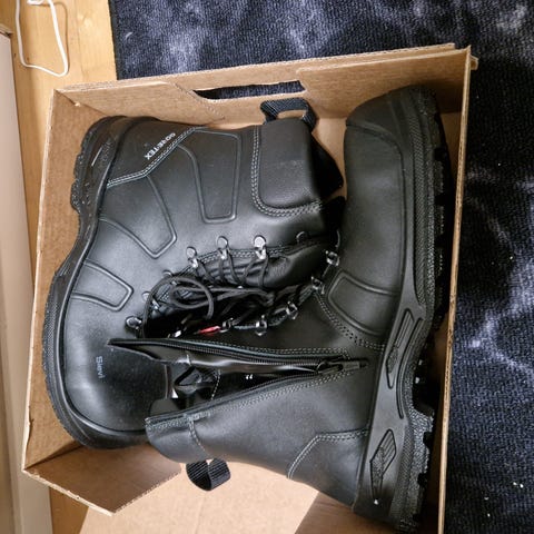 Myydään talviturvajalkineet kokoa 46, Sievi Alaska GT Roller XL+S7. Kengät ovat olleet käytössä, mutta maalitahroja (kengän kärjessä vihreällä ja pieni punainen läiskä) lukuunottamatta siistit.