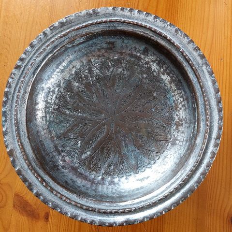Metallilautanen, mittoja halkaisija n.18cm keskiö n.5,5cm korkeus n.2,5cm + kuluneisuutta