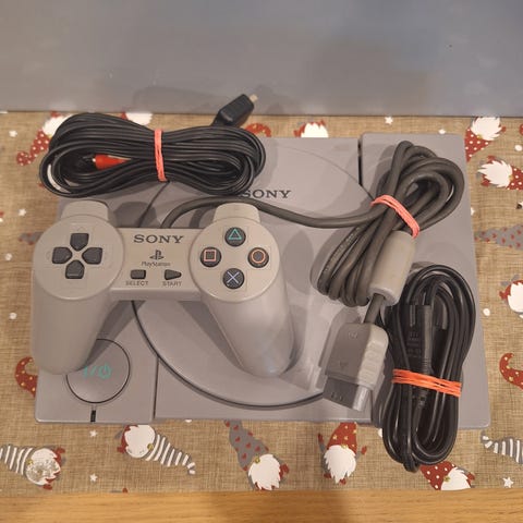 Hyvin toimiva ps pelikone,ojain av kaapeli ja virtalähde