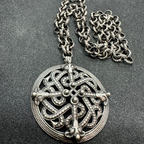 Tämä Kalevala Korun Nokian riipus -kaulakoru on valmistettu hopeasta. Sen riipuksessa on symmetrinen, spiraalikuvioin koristeltu muotoilu, joka heijastaa muinaissuomalaista estetiikkaa.Valmistaja: KALEVALA KORUKetjun pituus on noin 67 cmRiipuksen koko on noin 2,7Väri: tummanhopeaMateriaali: hopea