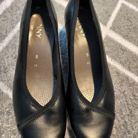 Mustat avokkaat, päälliosa nahkaa. Korko n. 5cm. Käytetyt