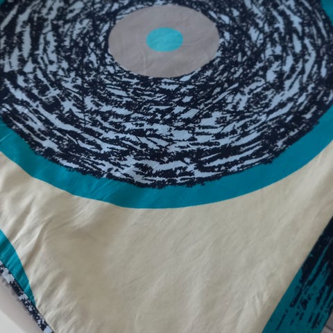 Mitat (LxP) ovat noin 130 x 190 cmMateriaali: 100% puuvillaDesign Kim NaverII laatu: muutama pieni pistetahra