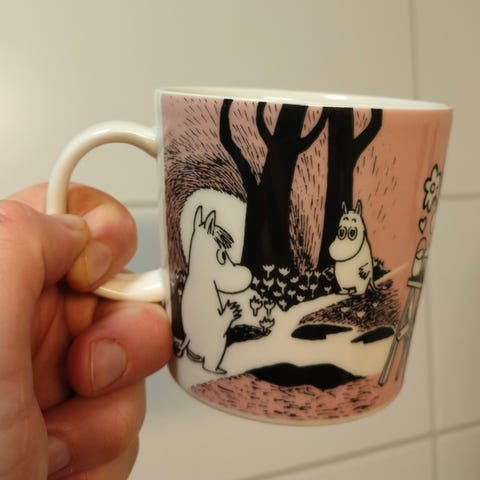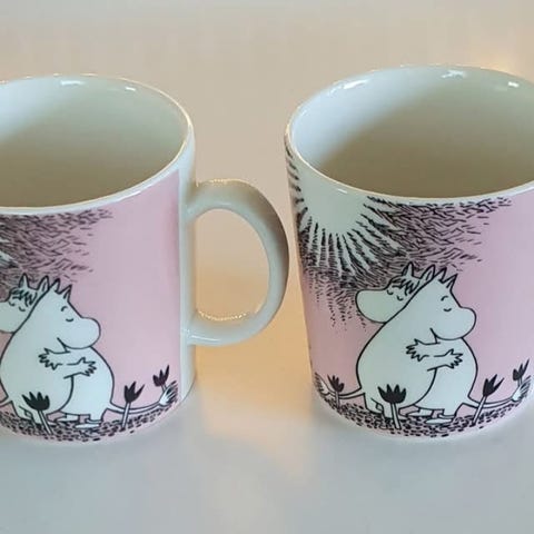 Rakkaus- ja Tiuhti ja Viuhti -muumimukit yhteispakettina. Kunto hyvä, pieniä käytön jälkiä saattaa olla, mutta käyttö ollut vähäistä.