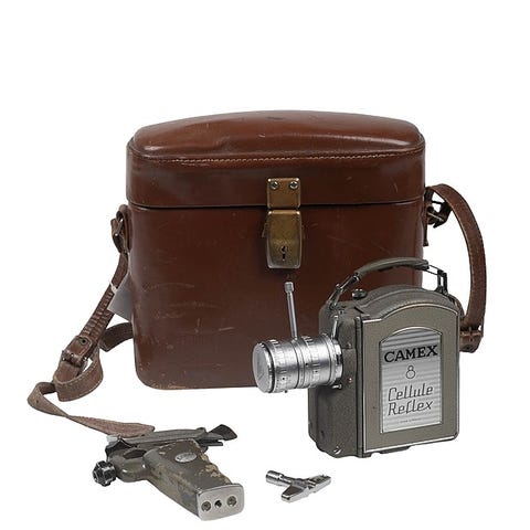 EMEL C98 kaitafilmikamera on varustettu Berthiot Hyper Cinor -objektiivilla. Kamera toimitetaan ruskeassa nahkaisessa kantolaukussa, ja mukana on myös veivi sekä rannenauha.Nahkaisessa kantolaukussa on kulumaa ja värjäytymiä, erityisesti sisäpuolella. Kamerassa on ikään liittyvää pientä pintakulumaa.Valmistaja: EMELVäri: harmaa, ruskea, hopeaMateriaali: metalli, nahka, lasi