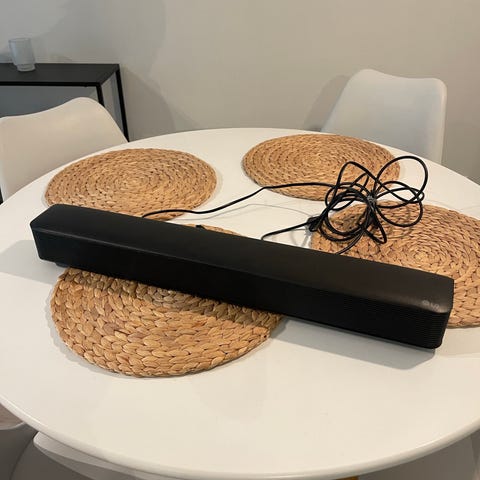 Malli: SN5YMitat (LxKxS) ovat noin 89 x 5,7 x 8,5 cmLiitännät: 2 x HDMI, 1 x USB, optical in, DC inMukana: AC adapter 25 V