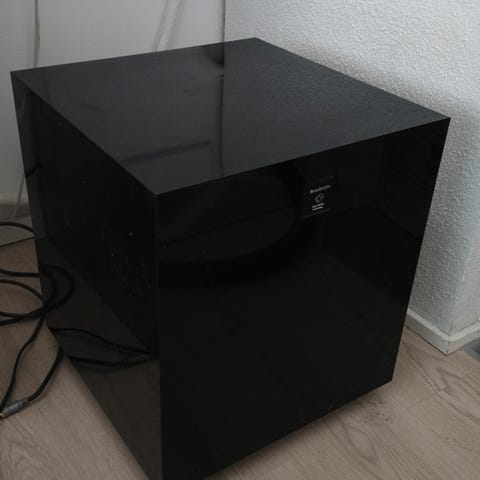 Malli: Addon C-SubRMS-teho: 200 WLangaton, WiFi-yhteys.Mukana virtalähdejohto.Mitat (LxKxS) ovat noin 23,0 x 25,0 x 23,0 cm per kaiutinKierrätyskeskuksen tarkistama laite.