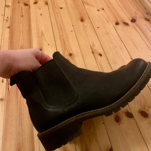 Nämä ruskeat Ecco-nilkkurit on valmistettu laadukkaasta nahasta ja niissä on musta, joustava ulkopohja. Kengissä on käytännöllinen vetoketjukiinnitys sivulla helppoa pukemista varten. Pohjan matala profiili ja kevyt rakenne luovat minimalistisen ilmeen.Koko 40.Koron korkeus: 2.5 cmSisämitta: 25.7 cmValmistaja: ECCOVäri: tummanruskeaMateriaali: nahka, kumi