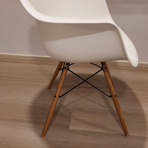 Myydään kaksi hyväkuntoista Vitra Eames DAW -tuolia luonnonvalkoinen-musta-vaahtera. Ostettu finnishdesignshopista ja olleet pienen perheen keittiön tuoleina.