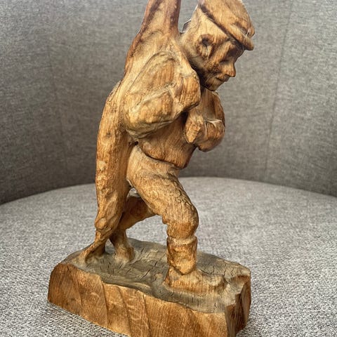Käsin veistetty puuveistos, jonka on valmistanut Georg Öhman. Teos esittää kyykyssä istuvaa poikaa yksinkertaisella ja karulla tyylillä. Veistos on tummanruskeaa puuta ja seisoo jykevällä suorakulmaisella jalustalla.Valmistaja: Georg ÖhmanMitat (LxKxS) ovat noin 6 x 15 x 7 cmVäri: tummanruskeaMateriaali: puu