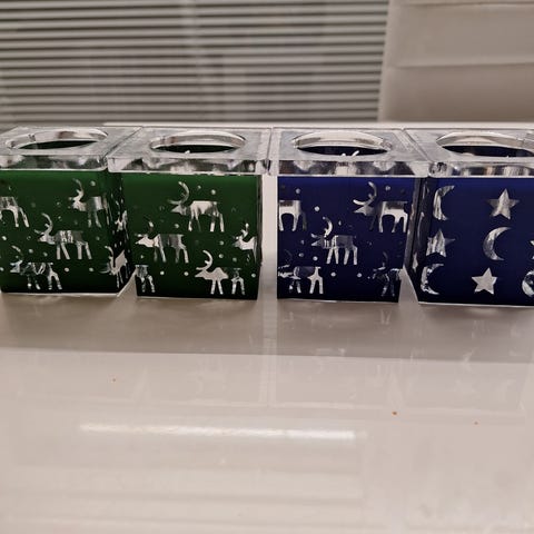 Muurlan tuikku kippo, Ristomatti Ratian suunnittelema. Huurrelasia, sisällä porokuviot.