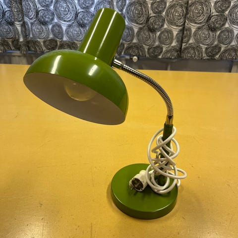 Design ValinteMitat (LxKxS) ovat kokonaisuudessaan noin 24,5x50x24,5 cmVarjostimen halkaisija on 24,5 cmLampun kanta on E27, 60 W (lamppu tulee mukana)Maadoittamaton pistokeMateriaali: puu, metalli, muoviKierrätyskeskuksen tarkistama laite.