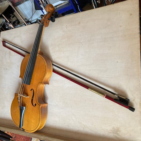 Siisti ja ehjä viulu. Jousen jouhi on irti yläpäästään. Kova ehjä kotelo.