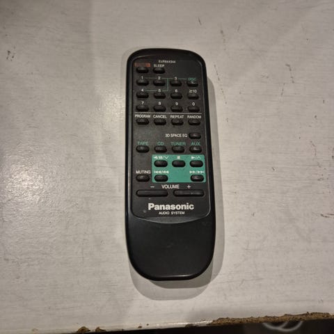Panasonic SA-PM46 -stereojärjestelmä, jonka CD-toiminnallisuudessa on vikaa. CD-asema ei usein suostu menemään kiinni auettuaan, joten levyjen soittaminen ei onnistu. Myös kaukosäädin puuttuu, ja vaikuttaa siltä että radiokanavia ei saa asetettua ilman kaukosäädintä.