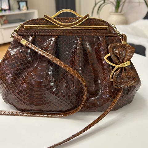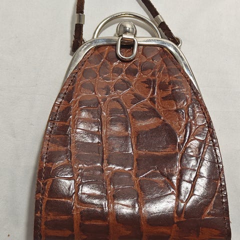 Myydään vintage,erittäin siisti ,ehjä aito krokotiilin nahkainen naisten laukku.Koko n.korkeus 23cm ja leveys n.36cm.Aspis real leather made in Cyprus.Tori diiliä ei ole.Postitan ja ostaja maksaa postimaksun 8.90.