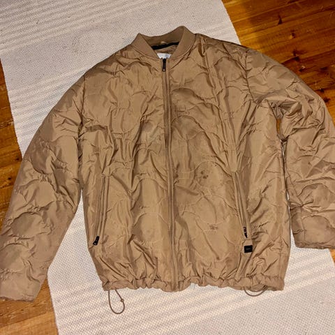 Valmistajan kokomerkintä: XLOlka - helma pituus n. 66 cmKainalo - kainalo mitta n. 60 cmPäällysmateriaali: 65% polyesteri, 35% puuvillaTäyte: 100% polyesteriVuori: 100% polyesteriKaulus: 100% puuvillaEtupuolella muutamia haaleita jälkiä