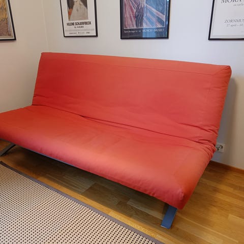 Kunto on hyvä, mutta kankaassa on havaittavissa pientä kulumaa käytön jäljiltä. Jalat ovat tukevat, mutta niissä on pieniä naarmuja. Mekanismi toimii moitteettomasti, mutta sängyn patjassa on lievää painaumaa.