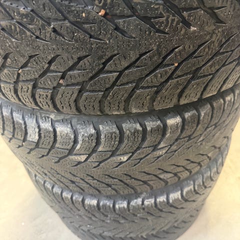 Pintaa noin 8-9mm joka renkaassa ja nastat ok kunnossa.