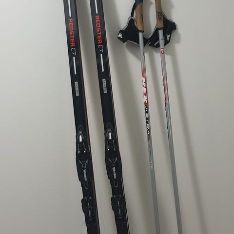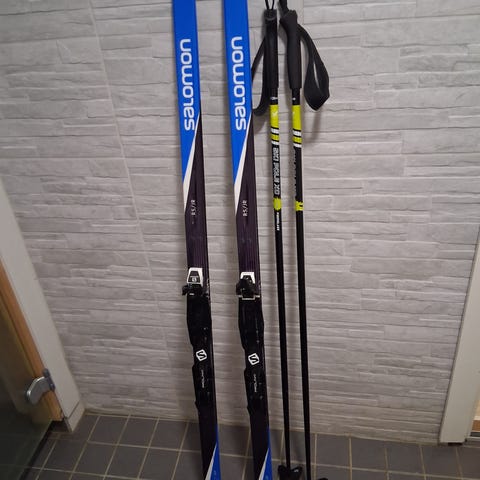Todella hyväkuntoinen lasten suksipaketti. Olleet käytössä kaksi talvea. NNN siteellä monot kokoa 35 ja sukset 147 cm pitkä