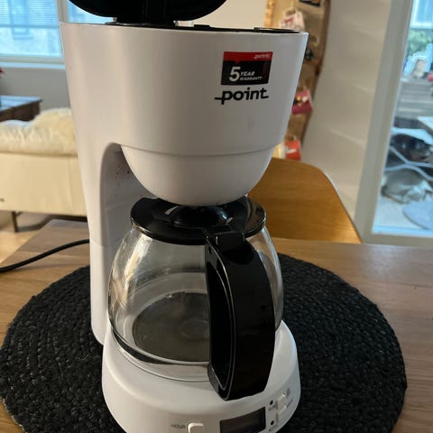 Point kahvinkeitin, jossa on lasinen keitinastia. Värit musta ja hopea. Soveltuu kotikäyttöön tai pieneen toimistoon. saat halvelmal jos haluut mä vaan tartten rahaa