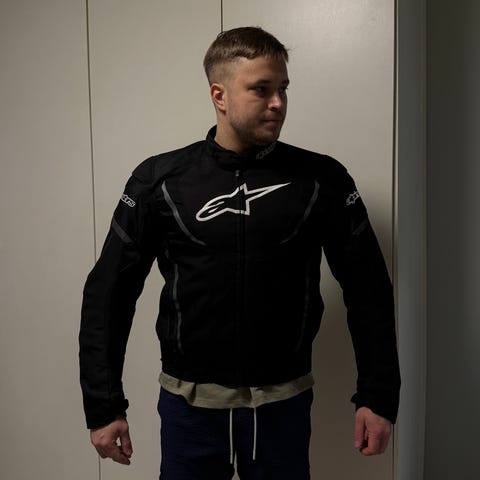 Myynnissä uutta vastaavat laadukkaat ajohousut. Ei kaaduttu tai rymytty missään. Ollut 180cm/100kg kuskilla