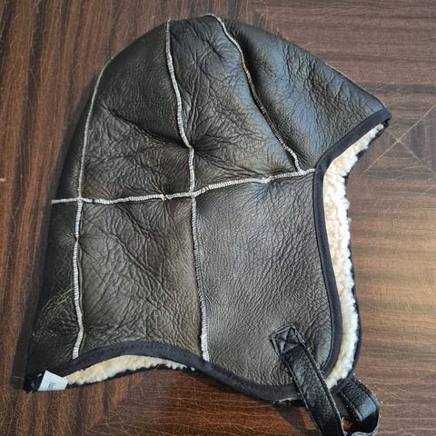 Myydään nahkainen kypärän aluslakki. Turkisvuori.