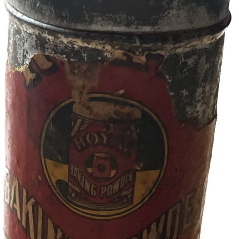 Vanha Rumford leivinjauhe-purkki.