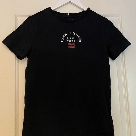Tommy Hilfigerin tummansininen T-paita. Koko 164. Käytetty juhlapaitana, joten on hyväkuntoinen, siisti ja ehjä.