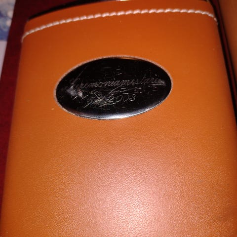 Pieni messinkinen pannu ja 5 asettia. Tikkuaski antamassa osviittaa koosta. Ajan patinaa näkyvissä. Ei ole itsellä ollut varsinaisessa käytössä, koristeena ollut.