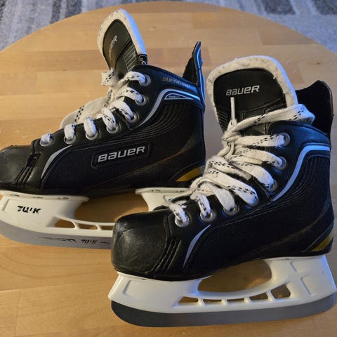 Bauer Jääkiekko luistimet, lasten koko 31. Luistimet ovat mustavalkoiset ja soveltuvat jääkiekkoon.