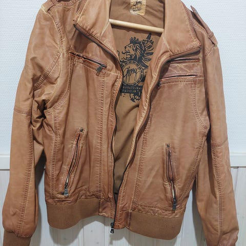 Nupukki nahkatakki, valmistaja J.Philipp Germany. Kokona M mut menee mielestäni myös L koossa.