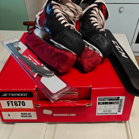 CCM JetSpeed FT670 lasten jääkiekkoluistimet, koko 35.5, normaali lesti. Luistimet voi uunittaa jalkaan sopivaksi. Luistimissa irroitettavat vaihtoterät.