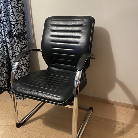 Käyttämätön laadukas tukeva tuoli, nahkaa. Ei ole löytänyt sopivaa paikkaa kodista. On ollut huoneen nurkassa käyttämättömänä. Väri on lähinnä beige, ei valkoinen. Kuvat otettu luonnonvalossa päivällä. Hämärässä näyttää beigeltä. On ostettu toimistokalusteita myyvästä liikkeestä.