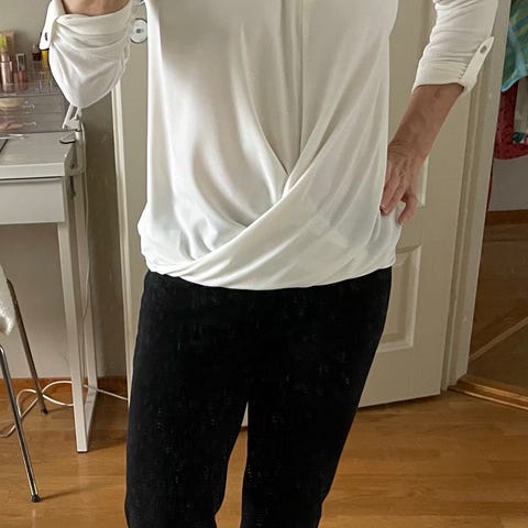 Esprit naisten pusero, koko S. Valmistettu polyesteristä. Väriltään mustavalkoinen kuvioitu.