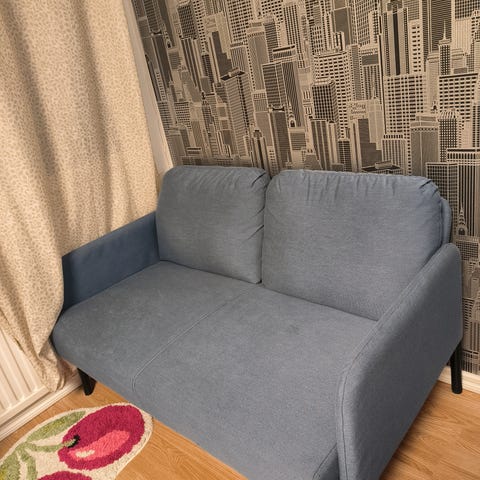 Sohva on hyvässä kunnossa. Sohvan päälliset ovat irrotettavat ja pehmusteet ovat hyvässä ryhdissä.