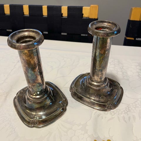 Upeat vanhat kynttilänjalat 2 kpl,korkeus 31cm,tina/lasi,virheettömät.