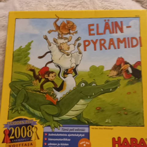 HABA Eläinpyramidi lasten peli, jossa pelaajat rakentavat eläinpyramideja käyttäen erilaisia eläinhahmoja. Peli kehittää kolmiulotteista ajattelukykyä, hienomotoriikkaa sekä silmien ja käsien yhteistyötä. Pelissä on 29 x2 puista eläinhahmoa, 1 pelilauta ja 1 symbolikortti. Sopii 2-4 pelaajalle, peliaika noin 15 minuuttia, suositusikä 4 vuotta ja yli.