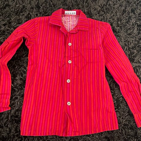 Marimekko lasten neulepaita, koko 122, punainen väri, valmistettu puuvillasta. Unisex-malli sopii sekä tytöille että pojille. Merkkilapussa lukee lapsen nimi
