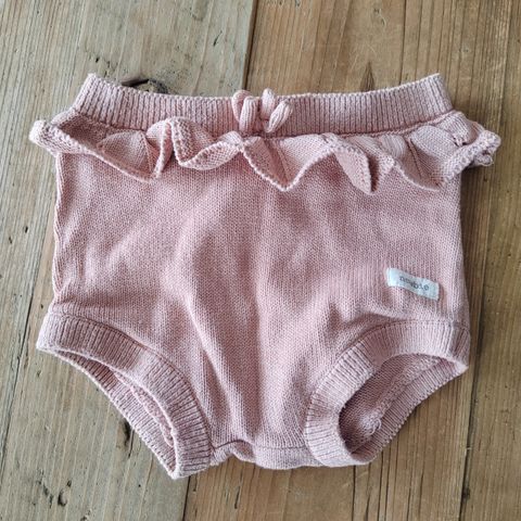 Vain pari krt. päälle ehtinyt Newbien frillakoristeinen neulemekko. Kauniit kirjailut edessä ja napit takana.