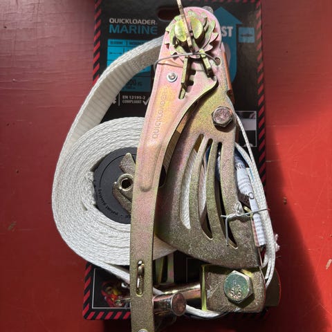 Sininen kuormaliina, jossa metalliset soljet. Käytetty materiaali kestävää ja soveltuu kuormien sitomiseen ja kiinnittämiseen kuljetuksen aikana.