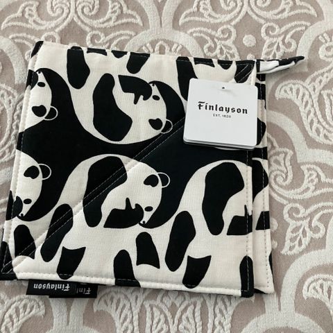 Patalapuilla on CE-merkintä, eli ne testatusti suojaavat käsiä kuumalta. Kulmasta kulmaan tikattu taittoura helpottaa astioihin tarttumista, ja ripustuslenkillä saat patalaput nätisti roikkumaan ja keittiötä koristamaan.”