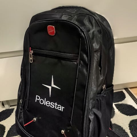 Sivussaa pieni Vetoketjulla oleva tasku ja pohjassa koko pohjan levyinen tasku. Esim. läppäri mahtuu sinne.