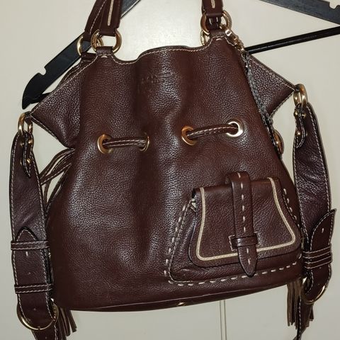 Musta laadukas hyväkuntoinen ranskalainen Lancel-laukku. Sivuilla ihanat roikkuvat hapsut, joilla voi kiristää laukunsuuta. Sisäosissa vetoketjutasku+ 2 muuta taskua. Ulkopuolella myös pieni tasku. Koko 30x29x17.