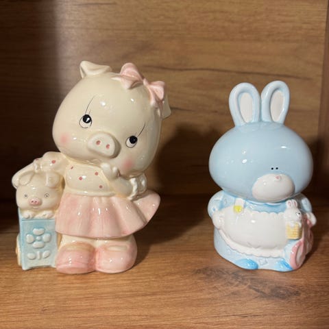 Walter Bosset messinkiset possut uuteen kotiin. Bosset oli Itävaltalainen taiteilija, joka teki useita messinkisiä eläin hahmoja. Yhden possun ovh oli n. 50 € taide kaupassa. Kaikki 3 yht 40