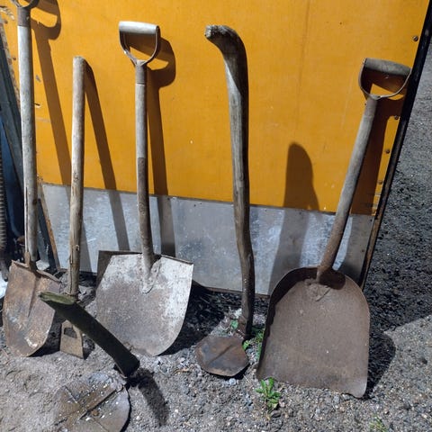 Kuvan työkalut 5€ kpl. Pitkät lapiot myyty.