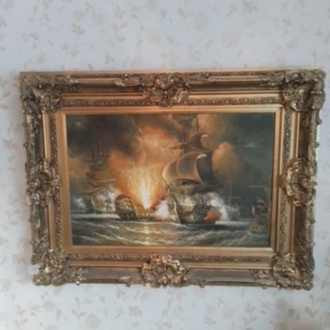 Maalaus, kauppatorilta josssa kaksi kuunaria jotka ovat ilmeisesti sotakorvauksia ja lähdössä venäjälle. Vain nouto