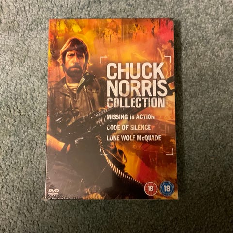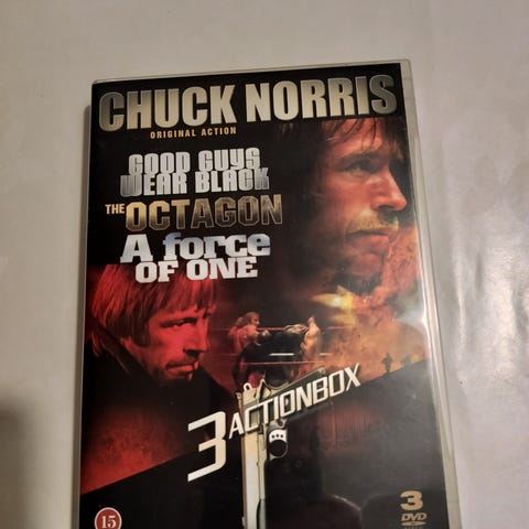Chuck Norris!!!! Futurefilmin boksi suomitekstein ja kuoriutuvin etiketein (tän julkaisun tyyyppivika). Dvdt silti toimivat normaalisti ja muuten loistokuntoinen.