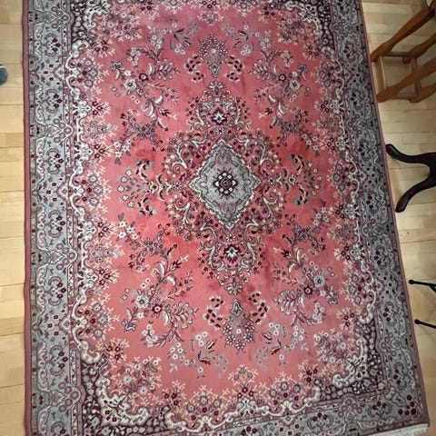 Myyntiin kuvan upea käsinsolmittu villamatto. Kauniit sävyt jotka auringossa hehkuu upeasti mutta näissä kuvissa ei oikeuksiin oikein pääse.