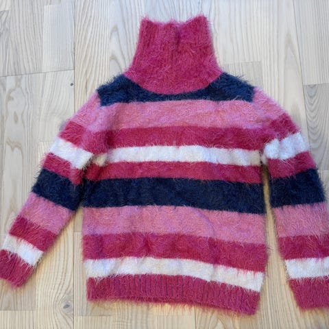 Lasten paita, koko 110, punainen väri, jossa on kolme valkoista ja ruskeaa hirviökuviota. Pitkähihainen malli, sopii lapsille.