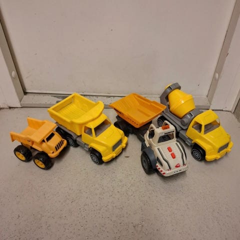 Punainen 83cm ja sininen 36cm muovinen lasten leikkikuorma-auto. Kuorma-autossa on suuri kuormatilaa ja se on suunniteltu lasten leikkeihin. Voit ostaa sen settinä tai erikseen, isomman auton hinta on 20 €, pienemmän 10 €, yhteensä 27 €. Sopii sisä- ja ulkokäyttöön. Nouto Myyrmäestä. Maksu käteisellä tai MobilePaylla. MMM.
